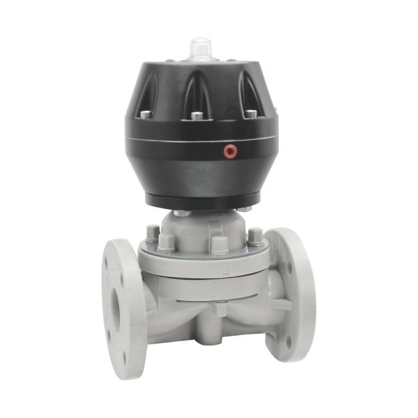 This full-featured valve is engineered to provide accurate throttling control and shutoff for industrial, chemical and water treatment applications. Weir-type design eliminates entrapped fluids in valve and is excellent for handling liquids with suspended solids, viscous fluids and slurries. Available in PVC, CPVC and Glass Filled Polypropylene with a variety of Diaphragm material options. PVC & CPVC 1/2 in - 2 in valves with Flanged Body, Spigot Body or True Union style Socket & Threaded ends or Optional Special Reinforced (SR) Threads, and sizes 2-1/2 in - 8 in with Flanged Body. Polypropylene 1/2 in - 2 in valves with True Union style Special Reinforced (SR) Threaded ends and sizes 2-1/2 in - 8 in with Flanged Body. True Union style also available in metric socket and BSP thread sizes 1/2 in through 2 in.